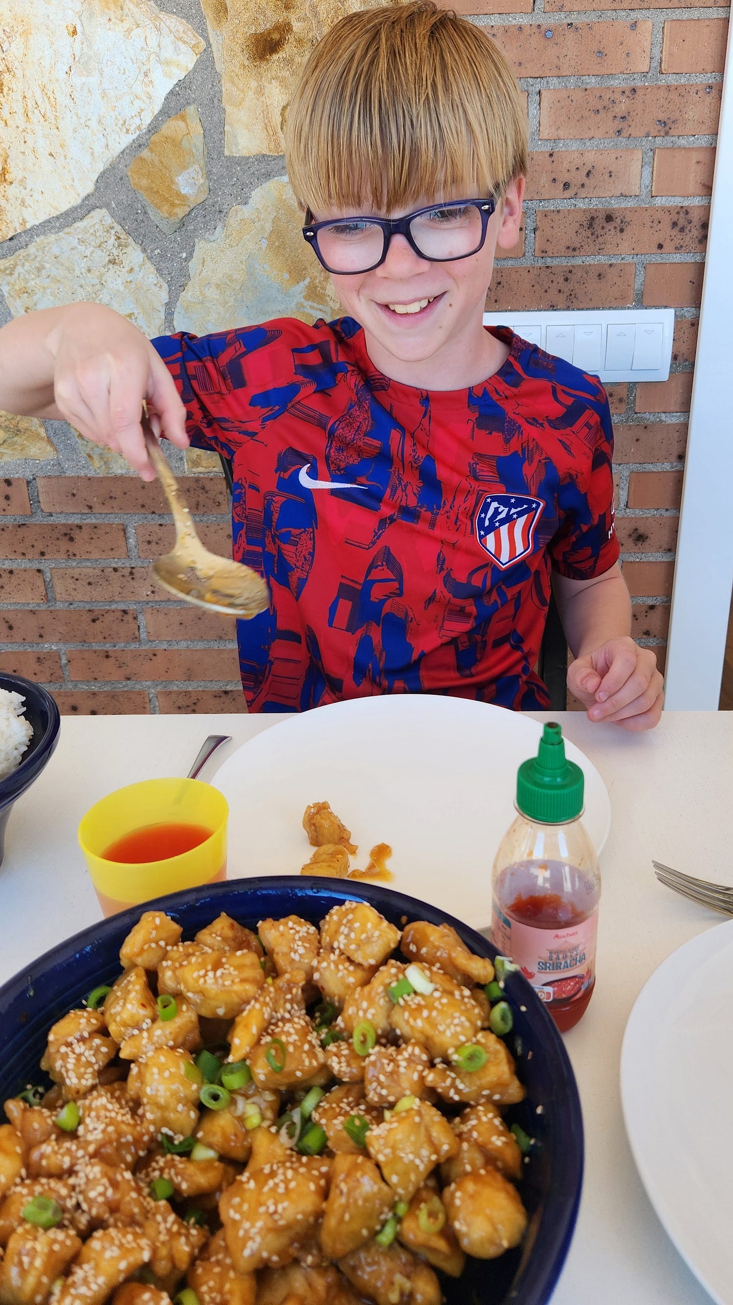 During our spring break, Austin participated in a soccer camp for three days, which definitely took him a little outside his comfort zone. He was gone from 9-2 and came home starving, so I made his favorite meals each day: salmon with rice, crispy orange chicken, and ramen.