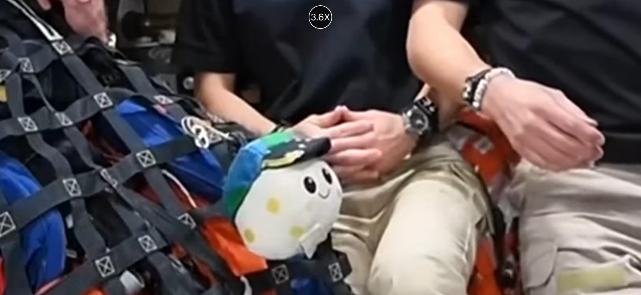 The zero-gravity indicator, a plushie designed by an eight year old, is called Rise, because he was inspired by the original earthrise image. He’s just happy to be along for the ride.
